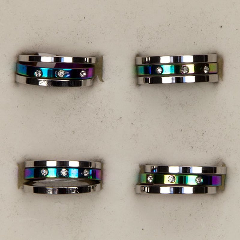 3-fach Edelstahlring Rainbow mit Schmucksteinen Material: Edelstahl