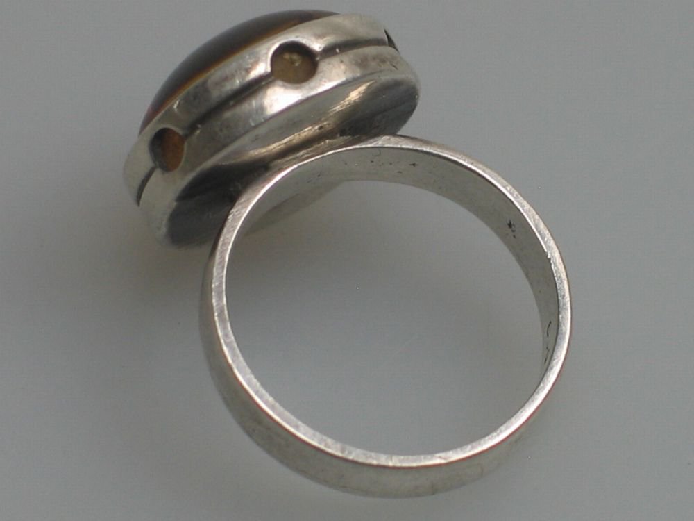 Ring aus 925er Silber mit Bernstein Silbergehalt: 925 (punziert) Ringinnendurchmesser: 16,5 mm (Gr. 51) Hintere Ringschienenbreite: 3,9 mm Ringkopfmaß: 15,6 mm Anzahl Edelsteine: 1 Gewicht: 5,6 Gramm Der Artikel ist aus 2. Hand, Zustand : sehr gut