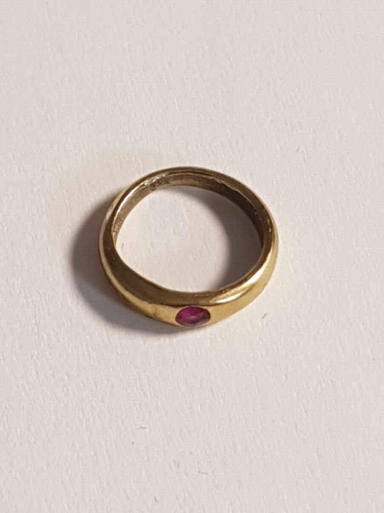 Taufring aus 333er Gold mit Rubin, Ringinnendurchmesser 8,5 mm! Gewicht: 0,4g