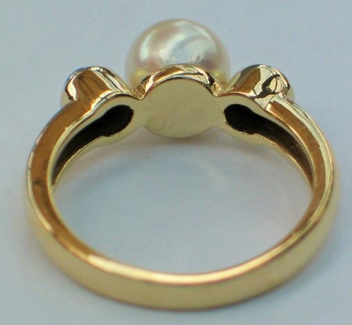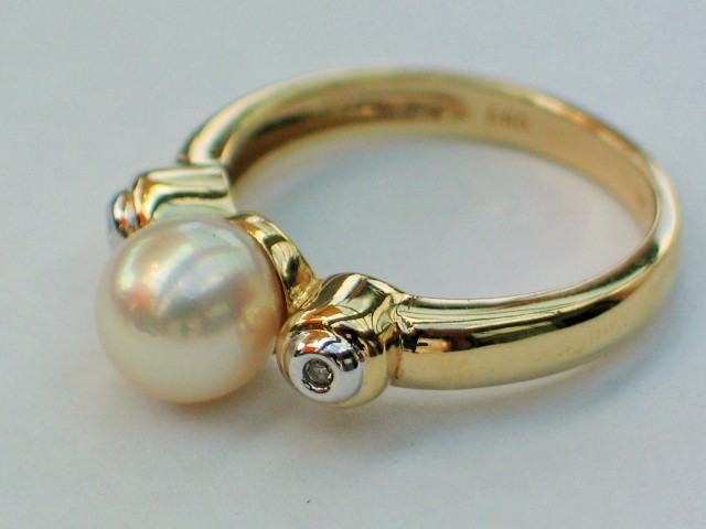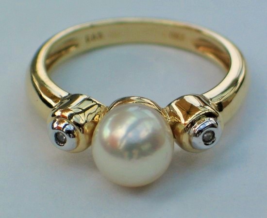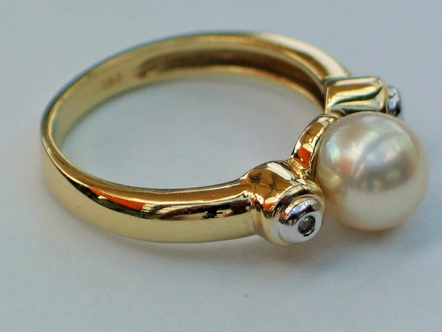 Perlenring und 2 kleinen Diamanten aus 585er Weissgold, Größe 55, Gewicht: 4,5g