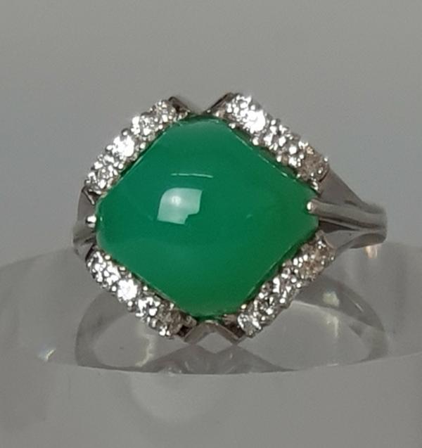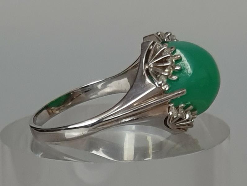 Chrysopras- Diamantring aus 750er Weißgold