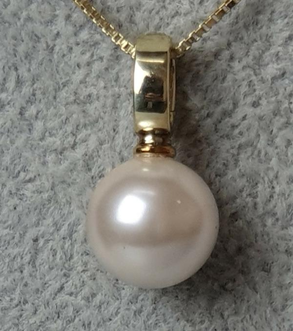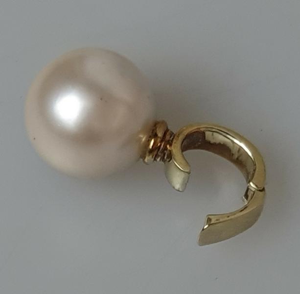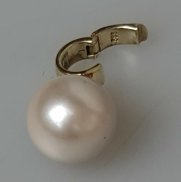 Perlenanhänger mit großer elfenbeinfarbener Rundperle und Clipverschluß, 585er Gold, Gewicht: 4,2g