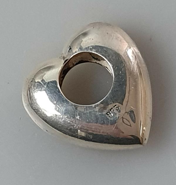 Anhänger "Herz" aus 925er Sterlingsilber Silbergehalt: 925 (punziert) Maße: 23,0 x 25,4 mm Ösendurchmesser: 10,0 mm Gewicht: 2,7 Gramm Der Artikel ist aus 2. Hand, Zustand : sehr gut