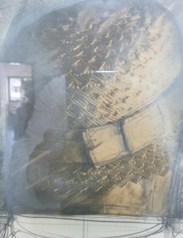 3x Farbzeichnungen im Rahmen unter Glas