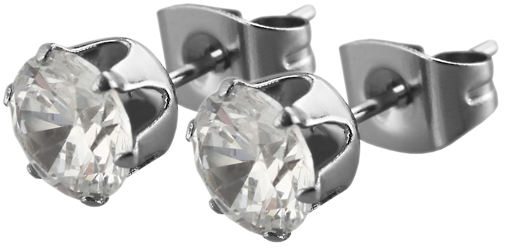 Akzent Ohrstecker aus Edelstahl. Der Verschluss ist ein Steckverschluss. Die Beschaffenheit zeigt sich in Edelstahl glänzend. Durchmesser 6 mm. Aufgewertet wird der Ohrschmuck mit Kristallstein in Weiß.