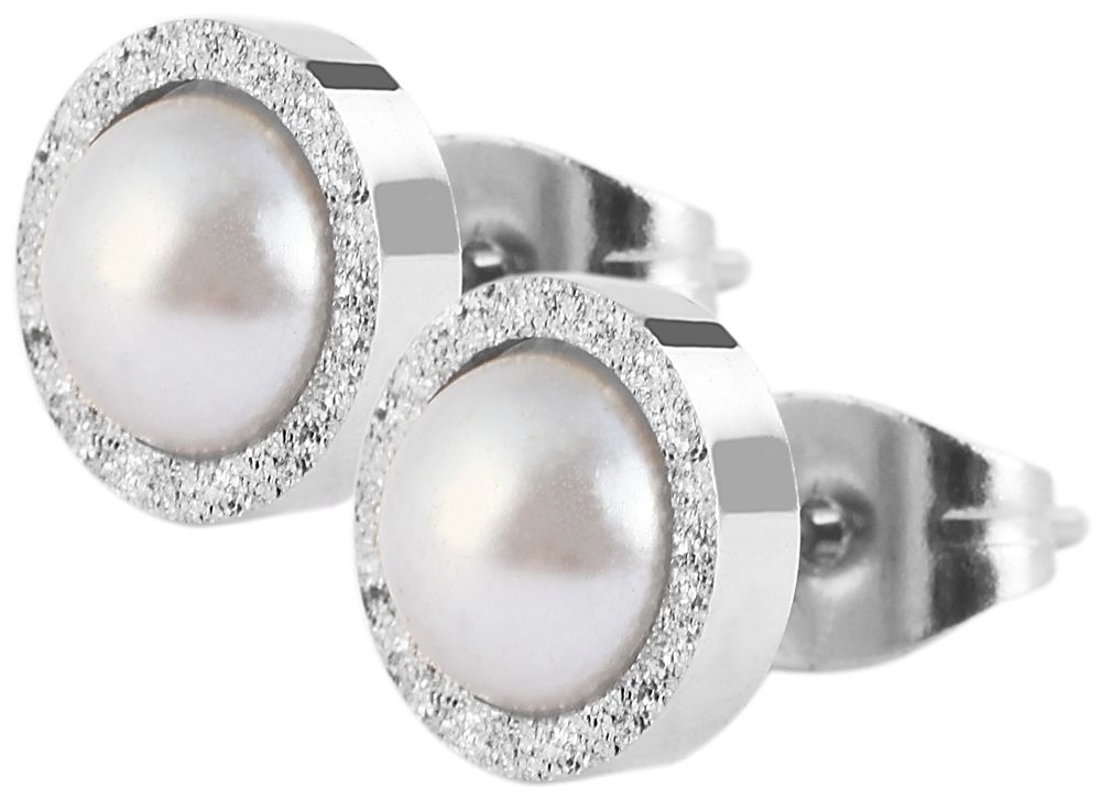 Akzent Edelstahl Ohrstecker mit Edelstein Schliff, Perlen Imitation