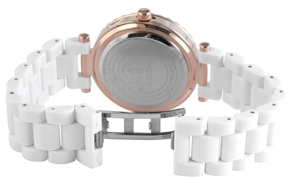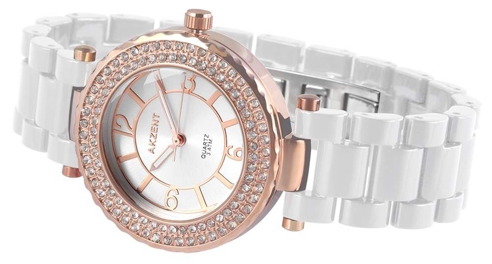 Die Analog Damenuhr der Marke Akzent verfügt über ein Hochwertiges Quarzwerk. Das Kunststoffarmband ist 20 mm breit und wird mit einer Edelstahlfaltschließe geöffnet. Die Gesamtlänge beträgt 19 cm. Das Metallgehäuse mit Mineralglas hat eine Abmessung von 40 mm und 12 mm Gehäusehöhe. Aufgewertet wird das Gehäuse mit Crystal-Besatz. Der Gehäusedeckel ist aus Edelstahl gefertigt. Die Uhr ist 3 ATM druckgeprüft.