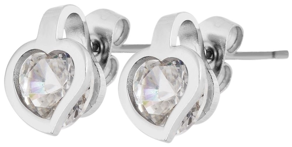 Akzent Edelstahl Ohrstecker "Herz" mit Kristallstein, silberfarbig
