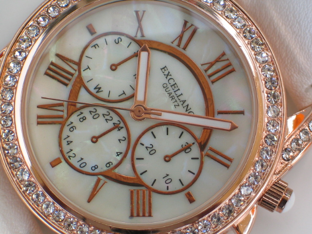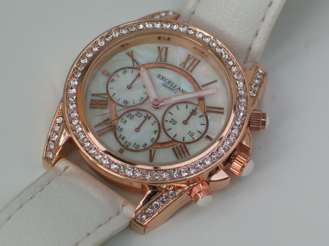 Excellanc Damenuhr mit Band aus Kunstleder und Schmucksteinen, Chronolook