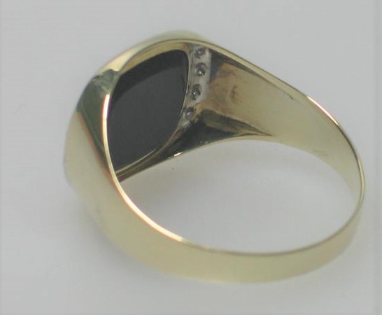 Ring aus 585er Gelbgold mit 8 Diamanten und einer Onyxplatte