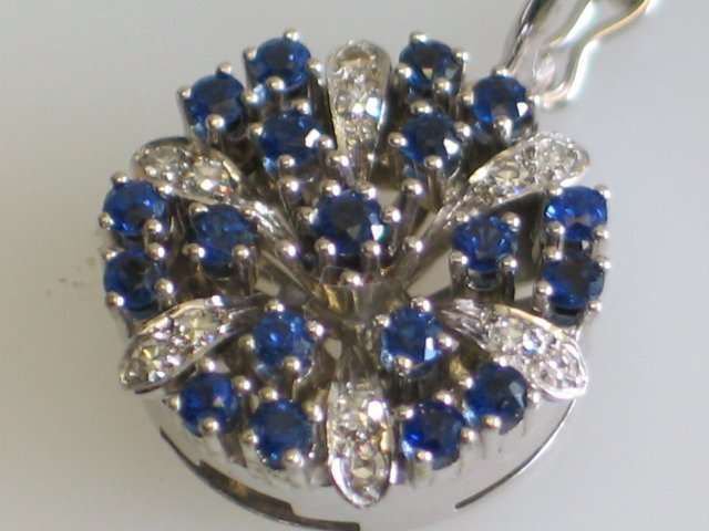 Herrlicher Anhänger für Perlenkette aus 585er Weißgold mit 12 Diamanten und 19 Saphir Edelsteinen