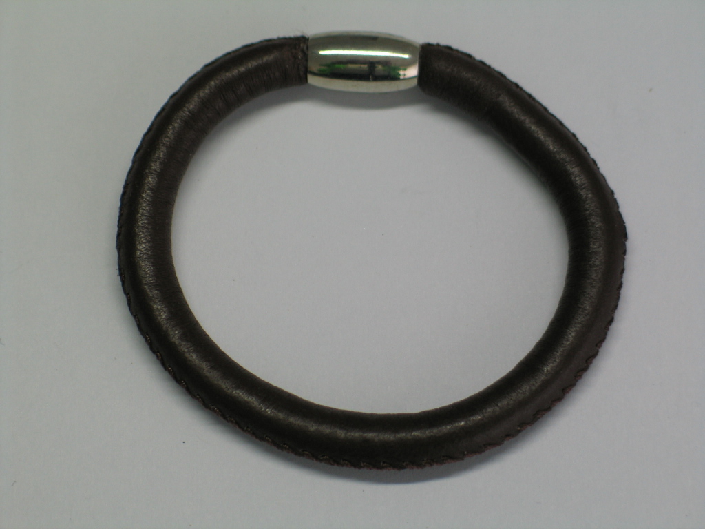 Akzent Unisex Lederarmband -dunkelbraun- mit Edelstahlelement, Magnetverschluss, 21 cm
