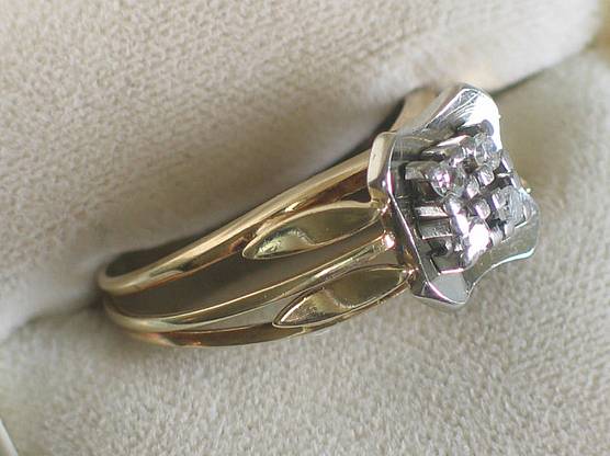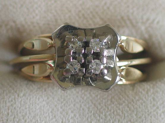 Diamantring mit 4 Brillanten aus 585er Gelbgold mit Weißgoldbesatz