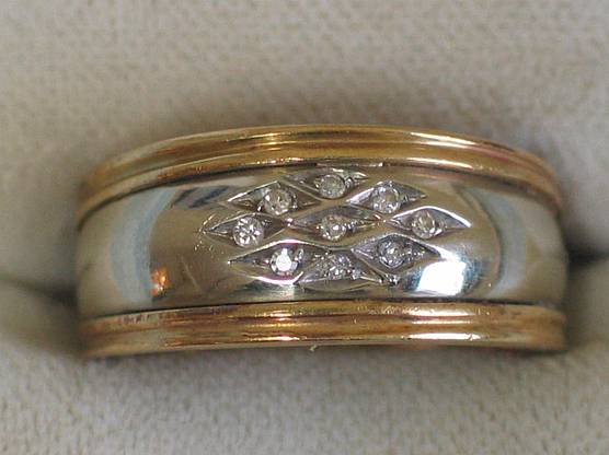 Edler Diamantring mit 0.10 ct. aus 750er Weiss / Gelbgold Goldgehalt: 750 (punziert) Ringinnendurchmesser: 17,7 mm Hintere Ringschienenbreite: 5,0 mm Ringkopfmaß: 8,9 mm Anzahl Edelsteine: 9 Diamantkarat: 0.10 ct Gewicht: 6,0 Gramm Bemerkungen: Innengravur