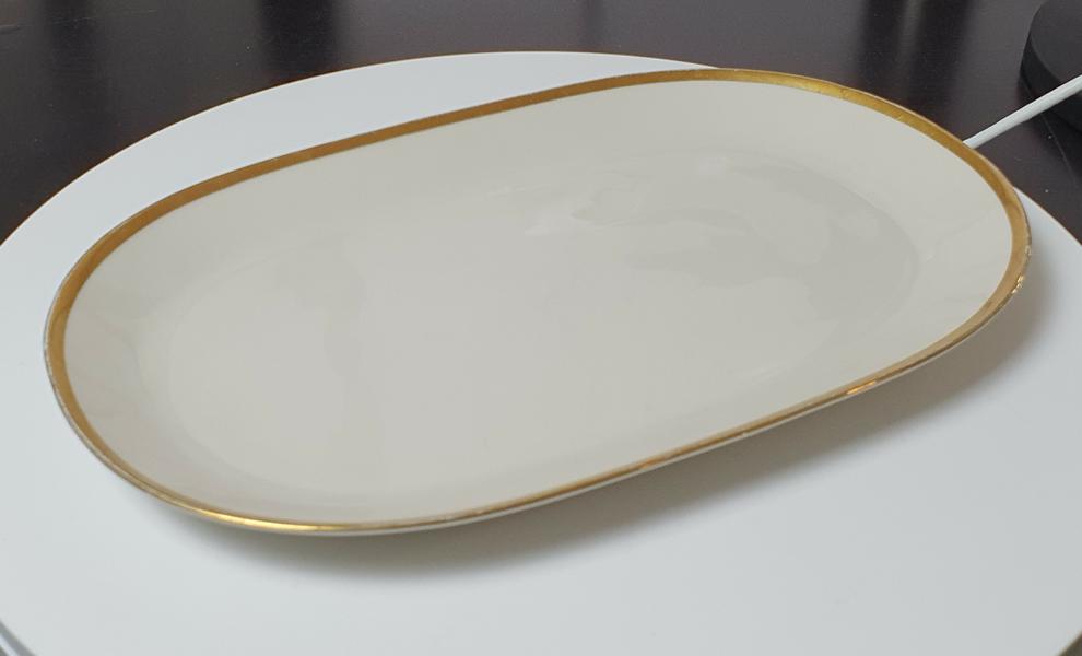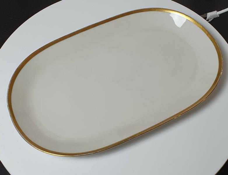Vintage: Johann Seltmann Vohenstrauß ovale Servierplatte/Fleischplatte mit Goldrand