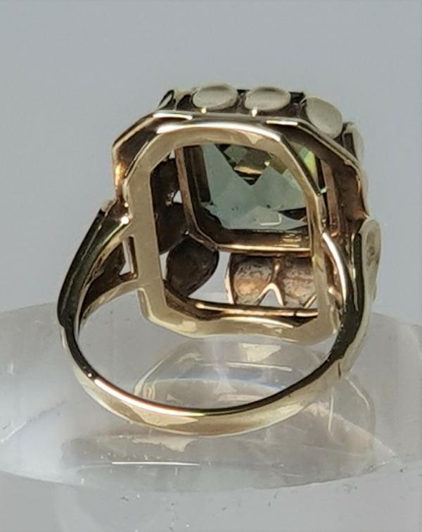 Antikschmuck: Ring aus 333er Gelbgold mit einem grünen Spinell Edelstein