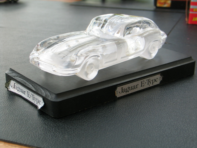 Jaguar E Coupe aus Bleikristallglas und Sockel mit Zertifikat, Masse ca. 17,0 x 7.0 cm