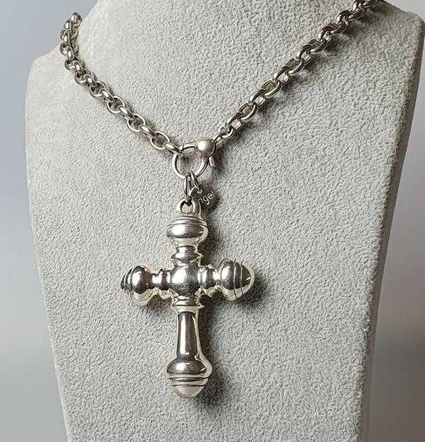 Ankerkette mit großem Kreuzanhänger aus 925er Sterlingsilber, Länge: 50,0 cm, Gewicht: 46,4g