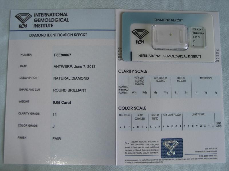 Diamant im Brillantschliff 0.05 ct / I1 / J / Fair / mit IGI Report