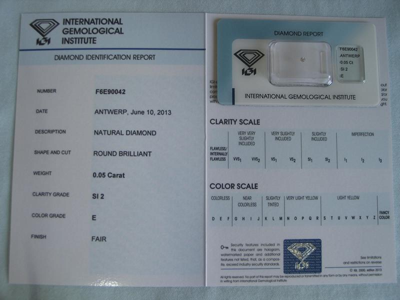 Diamant im Brillantschliff 0.05 ct / SI2 / E / Fair / mit IGI Report