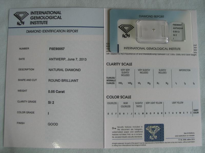 Diamant im Brillantschliff 0.05 ct / SI2 / I / Good / mit IGI Report