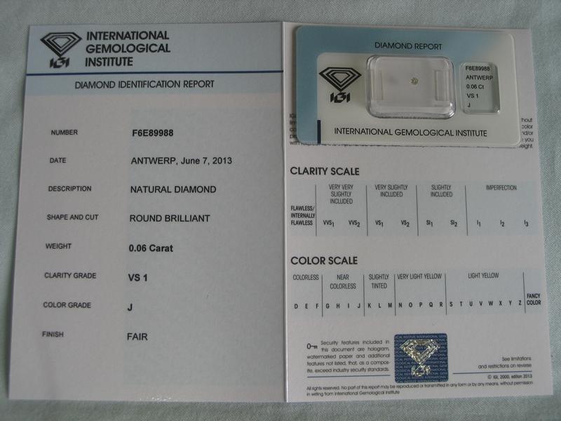 Diamant im Brillantschliff 0.06 ct / VS1 / J / Fair / mit IGI Report