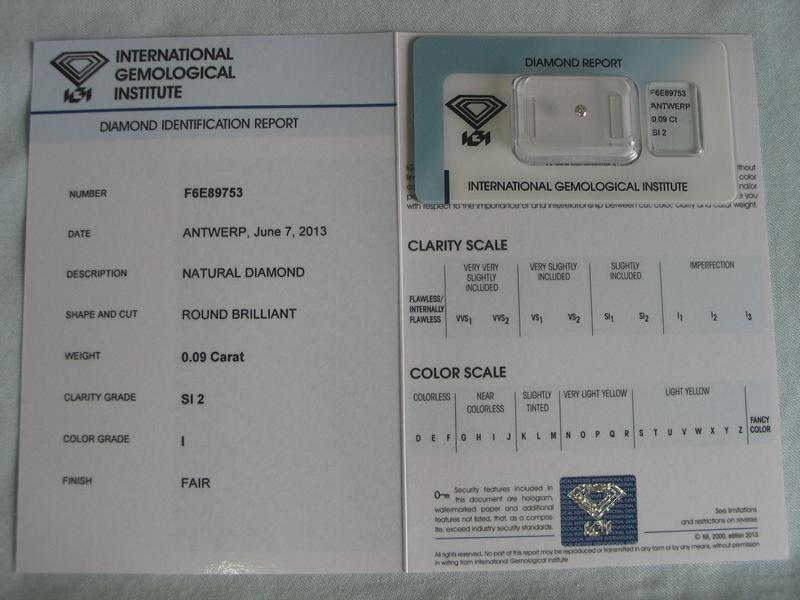 Diamant im Brillantschliff 0.09 ct / SI2 / I / Fair / mit IGI Report