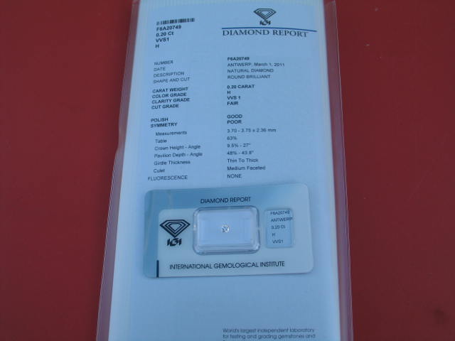 Diamant im Brillantschliff 0.20 ct/ vvs1 mit IGI Report
