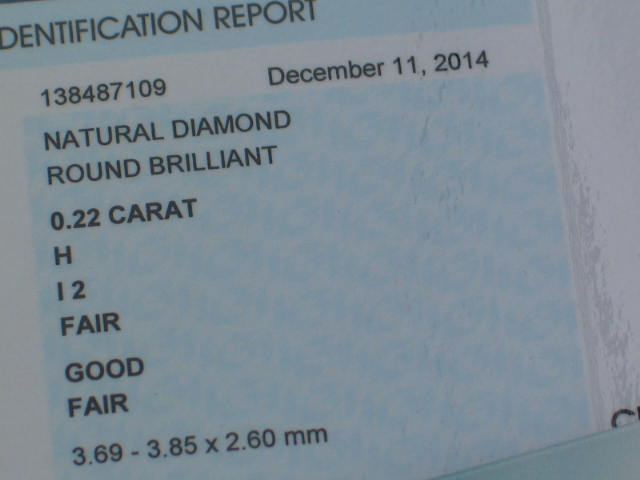 Diamant im Brillantschliff 0.22 ct/ H/ I2/ F/ G/ F/ N mit IGI Report