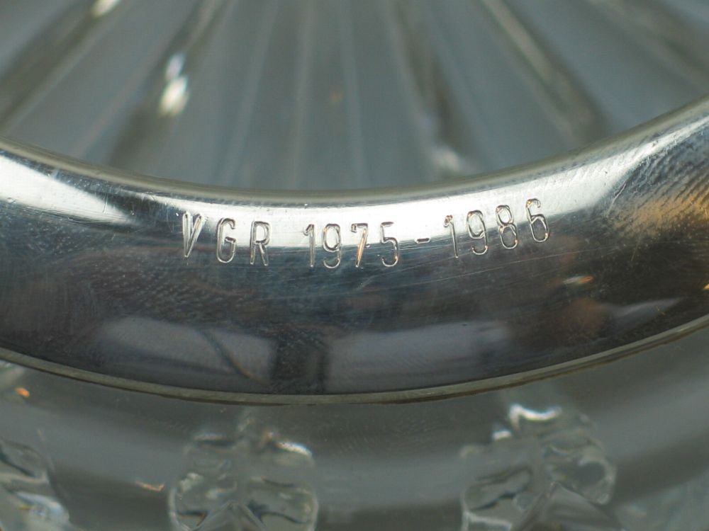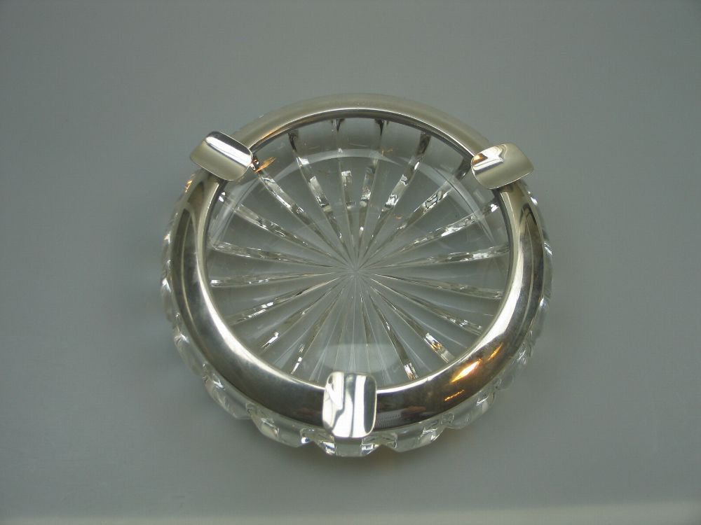 Massiver Kristallaschenbecher mit Rand aus 925er Sterlingsilber G + K Gewicht: 720 Gramm