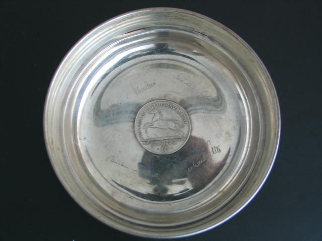 Champagnerflaschenuntersetzer mit 2/3 Taler "Karl I", 925er Sterlingsilber, Durchmesser 12,5 cm, 202g