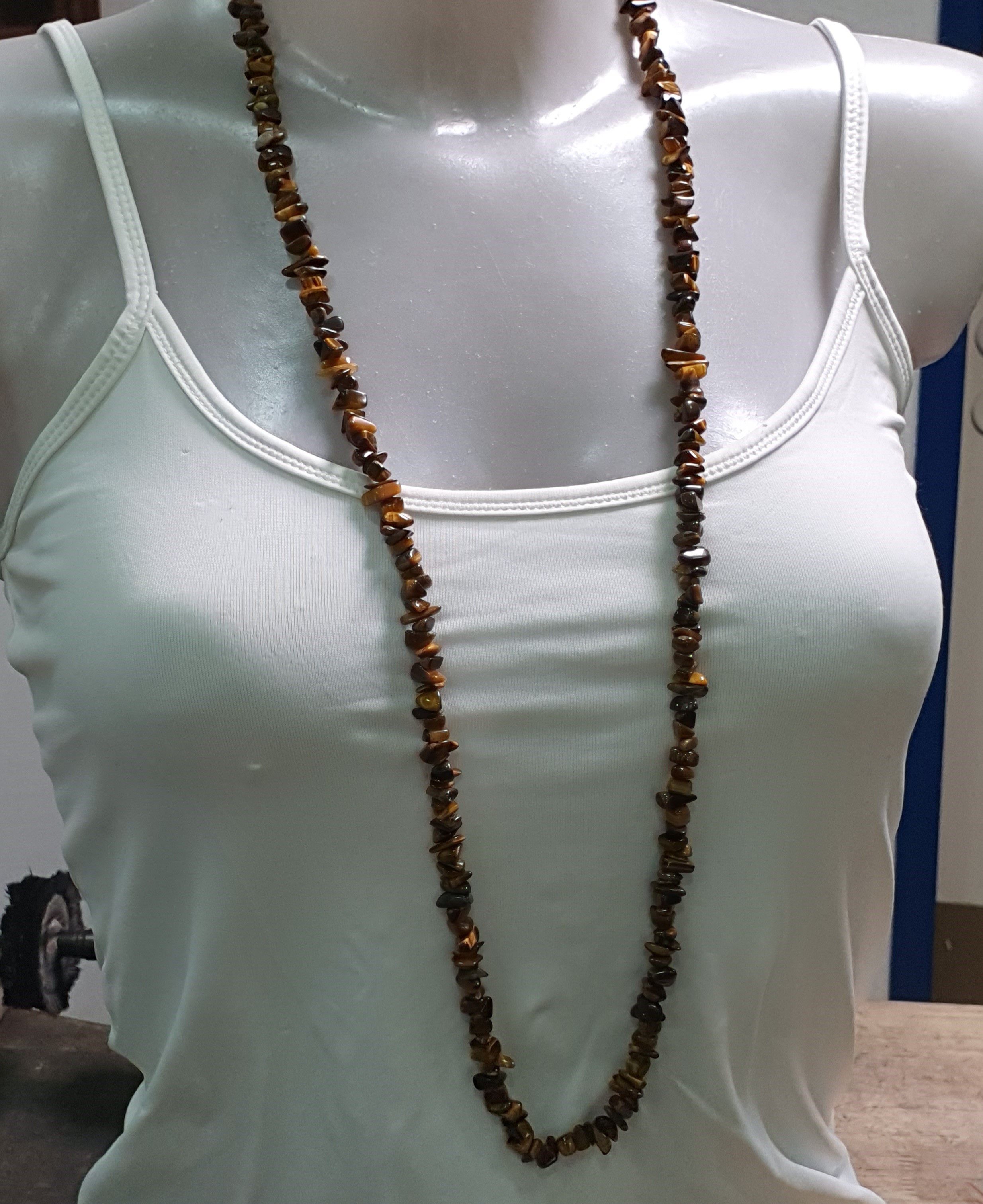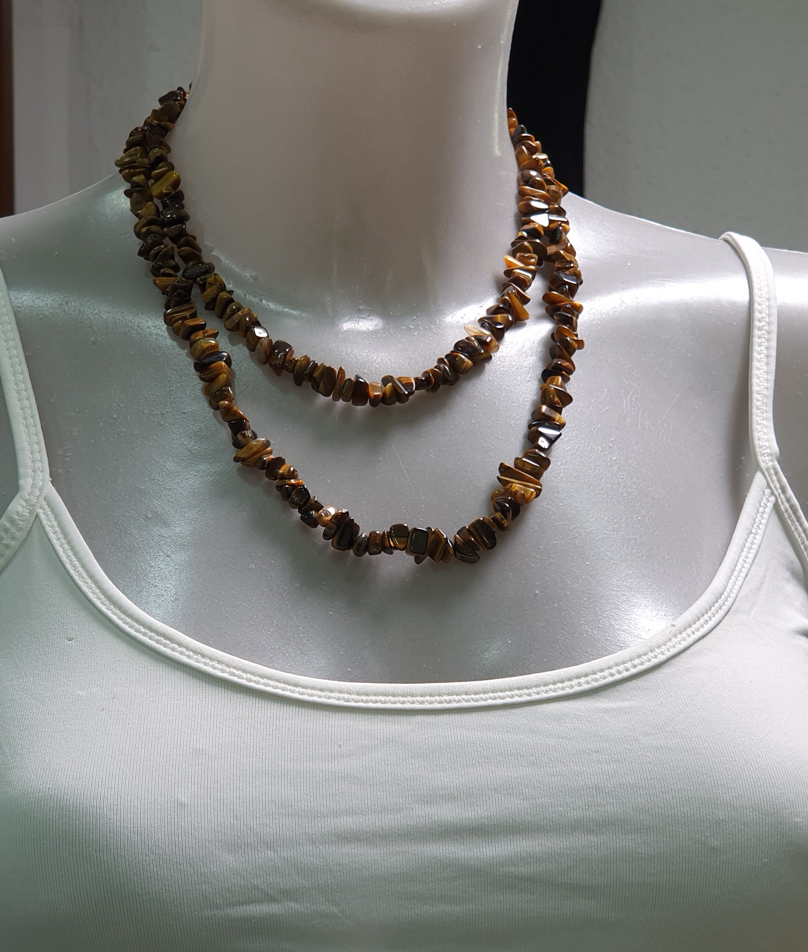 Lange Tigeraugen Schmuckstein Halskette Ein- oder Zweireihig tragbar