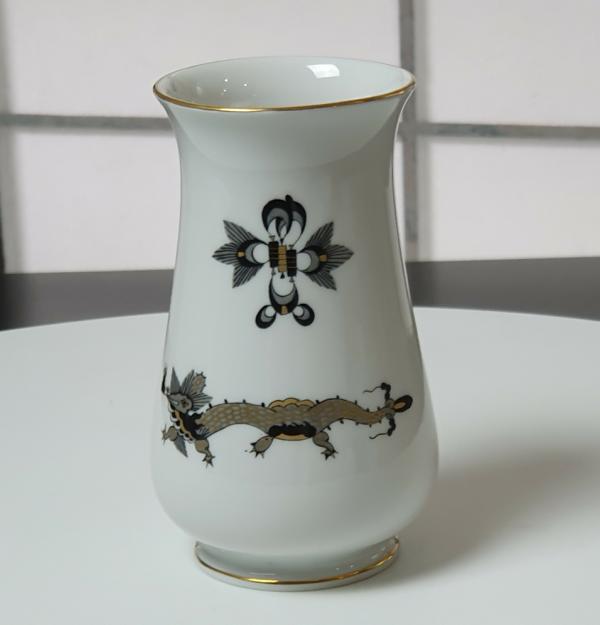 Preview: Vintage Meissen Vase, Reicher Drache, schwarz, goldschattiert mit Goldrand
