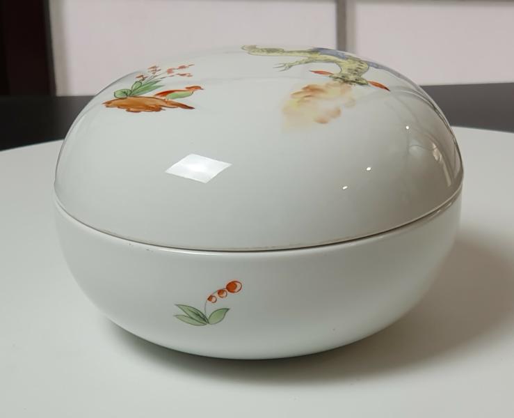 Preview: Vintage Meissen Deckeldose, rund, Drachen und Vogeldekor