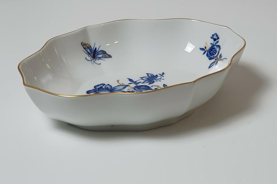 Vintage Meissen Schale, Blumendekor, kobaltblau mit Goldrand, Mod. 1