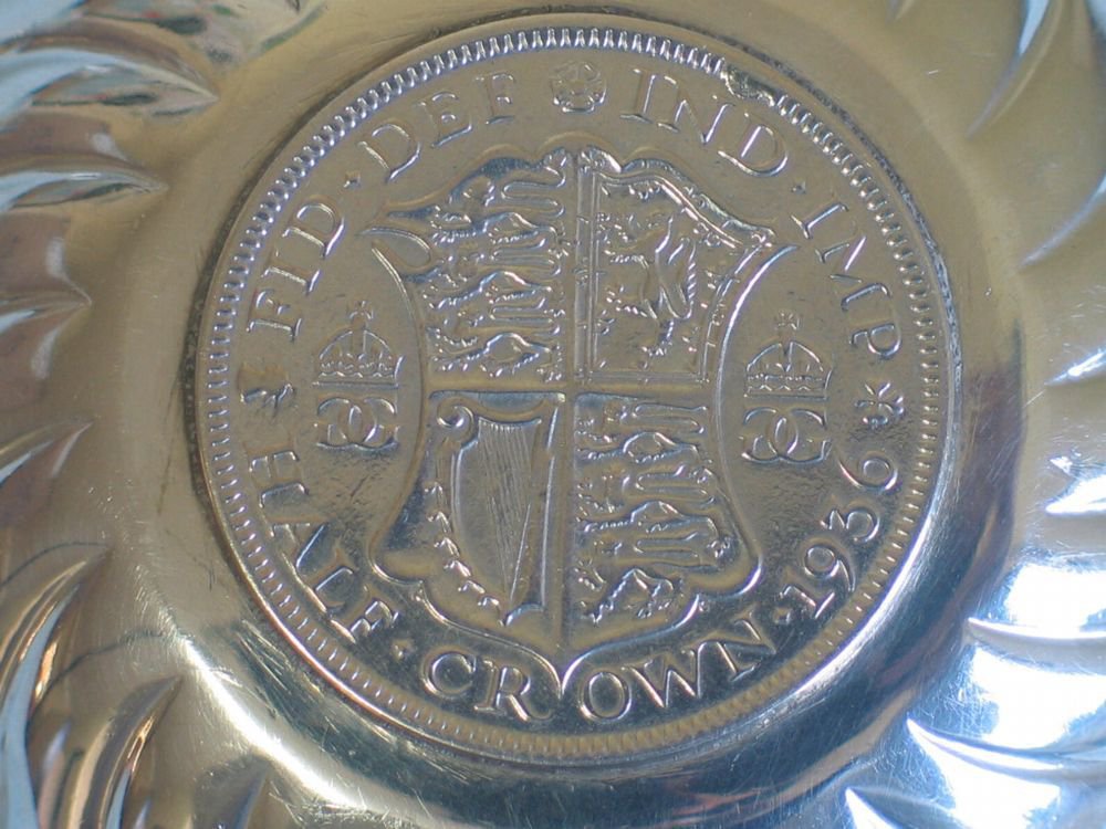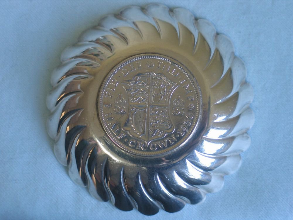 Münzboden Zierschälchen aus 800er Silber - Nachprägung - Half Crown George V 1936 Gewicht: ca. 30,9 Gramm