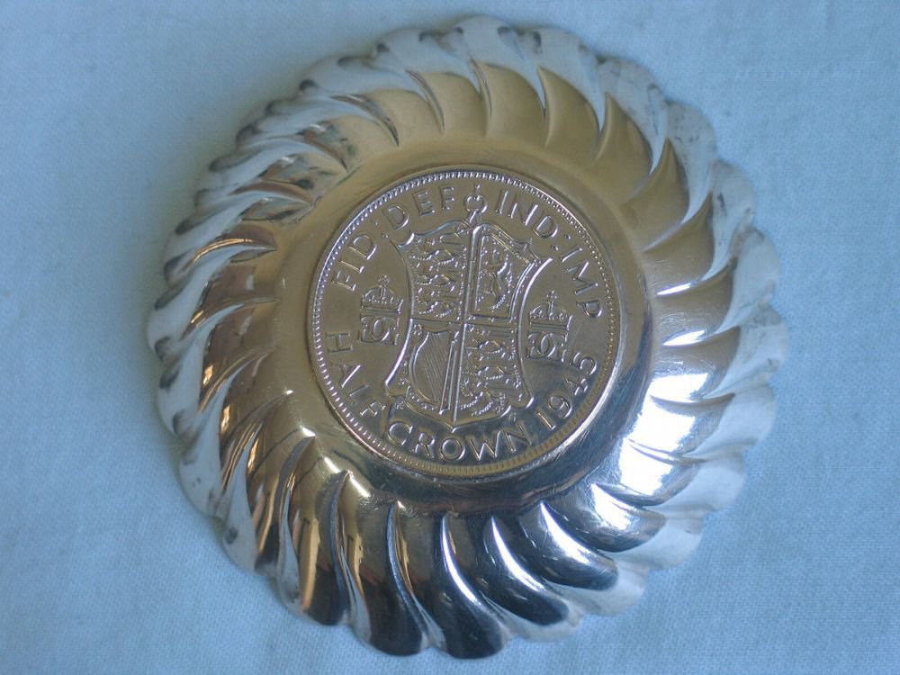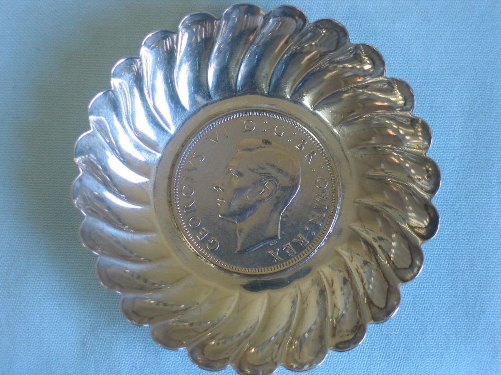 Münzboden Zierschälchen aus 800er Silber - Nachprägung - Half Crown George VI 1945 Gewicht: ca. 32,1 Gramm