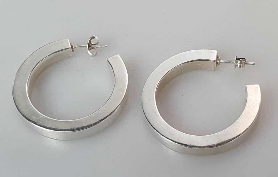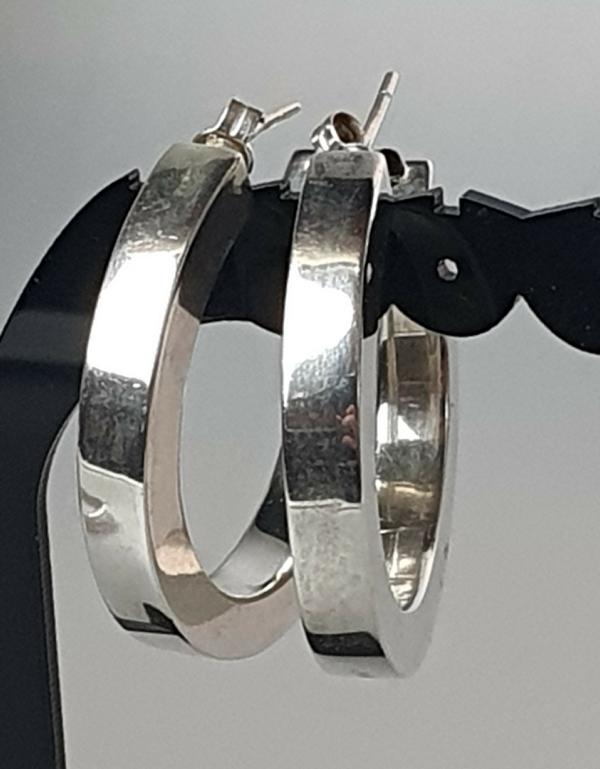 Große Creolen Ohrstecker aus 925er Sterlingsilber Silbergehalt: 925 (punziert) Durchmesser bzw. Höhe: 35,0 mm Stärke: 5,0 mm Gewicht: 8,7 Gramm Der Artikel ist aus 2. Hand, Zustand : gut