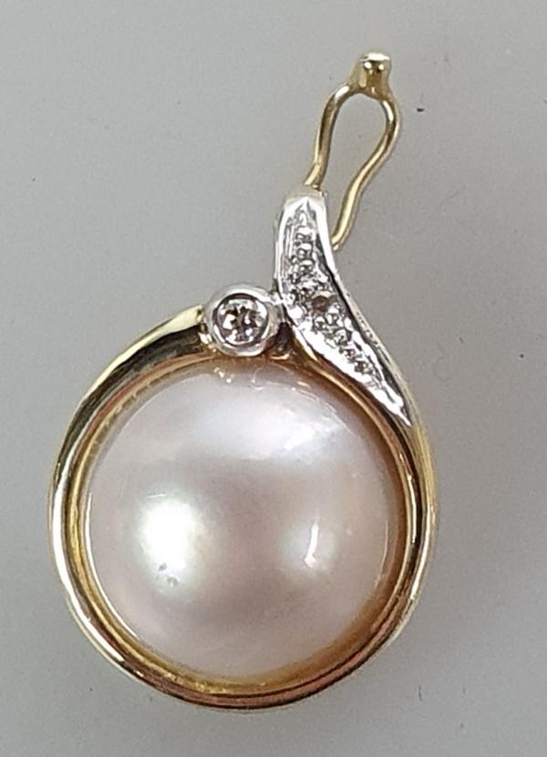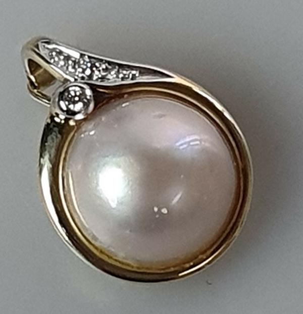 Großer Halbperlen Diamant Kettenanhänger aus 585er Gelbgold mit Weißgoldelementen