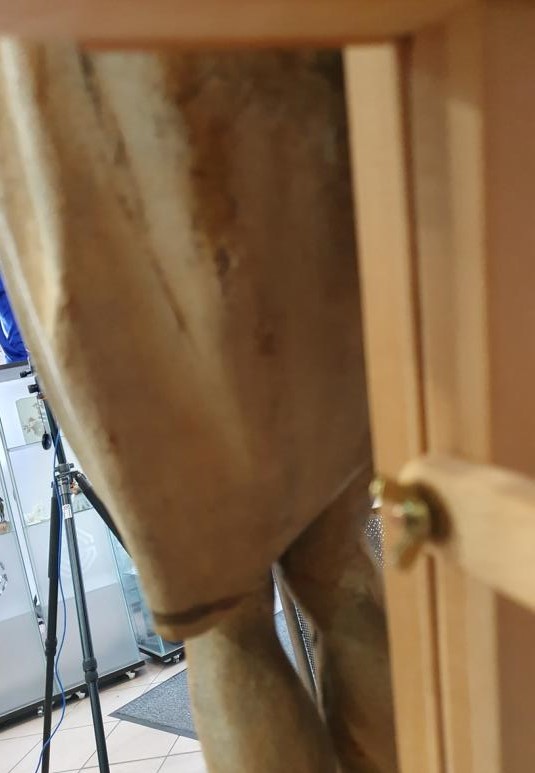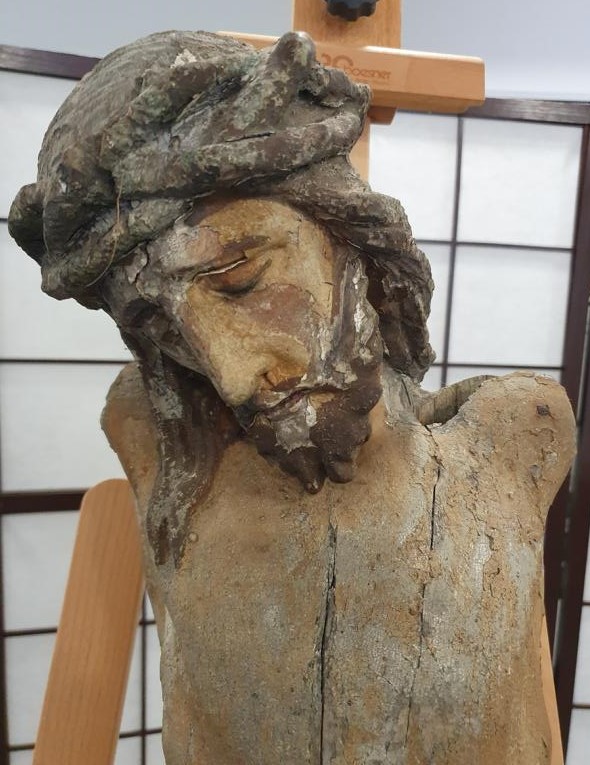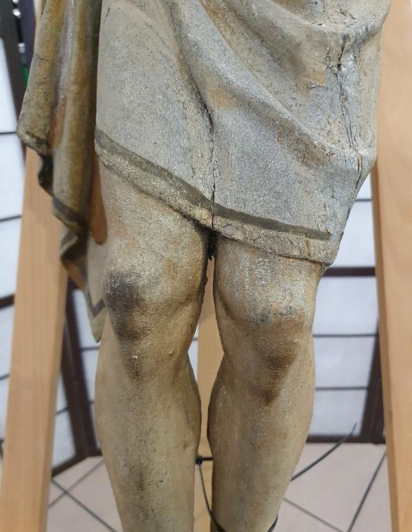 Große Holzskulptur aus dem 18. Jahrhundert in unrestauriertem Zustand
