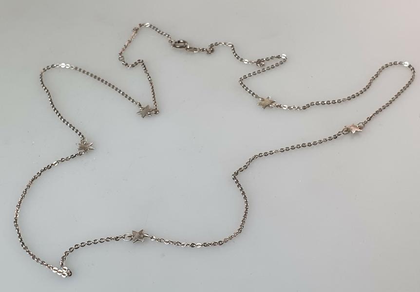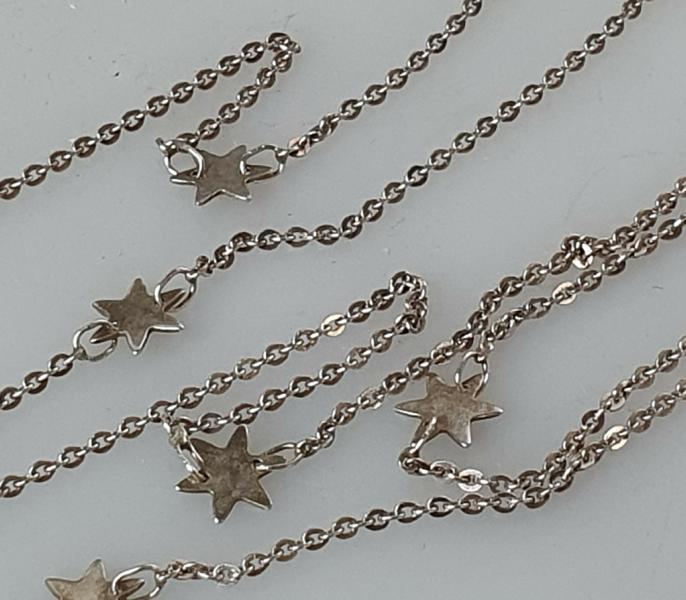 Lange Ankerhalskette mit Sternen aus 835er Silber, Länge: 81,0 cm, Gewicht: 4,8g