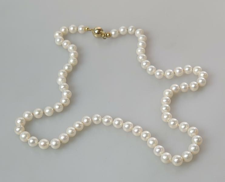 Perlenkette mit Verschluss aus 585er Gold, Länge 52,0 cm, Gewicht: 30,0g