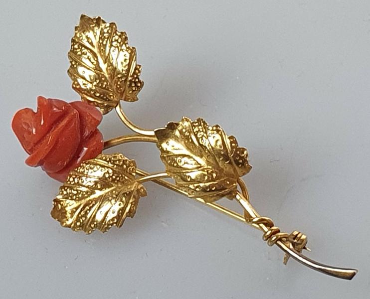 Vintage Brosche "Rose" aus dunkelroter Koralle Goldgehalt: 750 (geprüft) Maße: ca. 23,0 x 52,0 mm Verschluss: Nadelverschluss Gewicht: 4,3 Gramm Der Artikel ist aus 2. Hand, Zustand : sehr gut